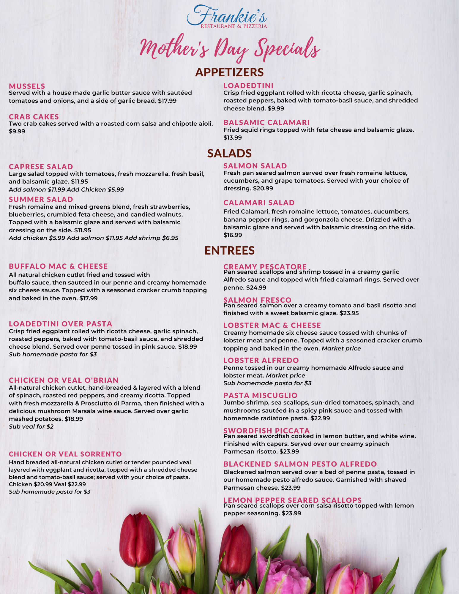Fabulous family owned restaurant. Huge portions of great Italian food. My favorites are the chicken parmigiana and their braised short rib garlic mashed potatoes.